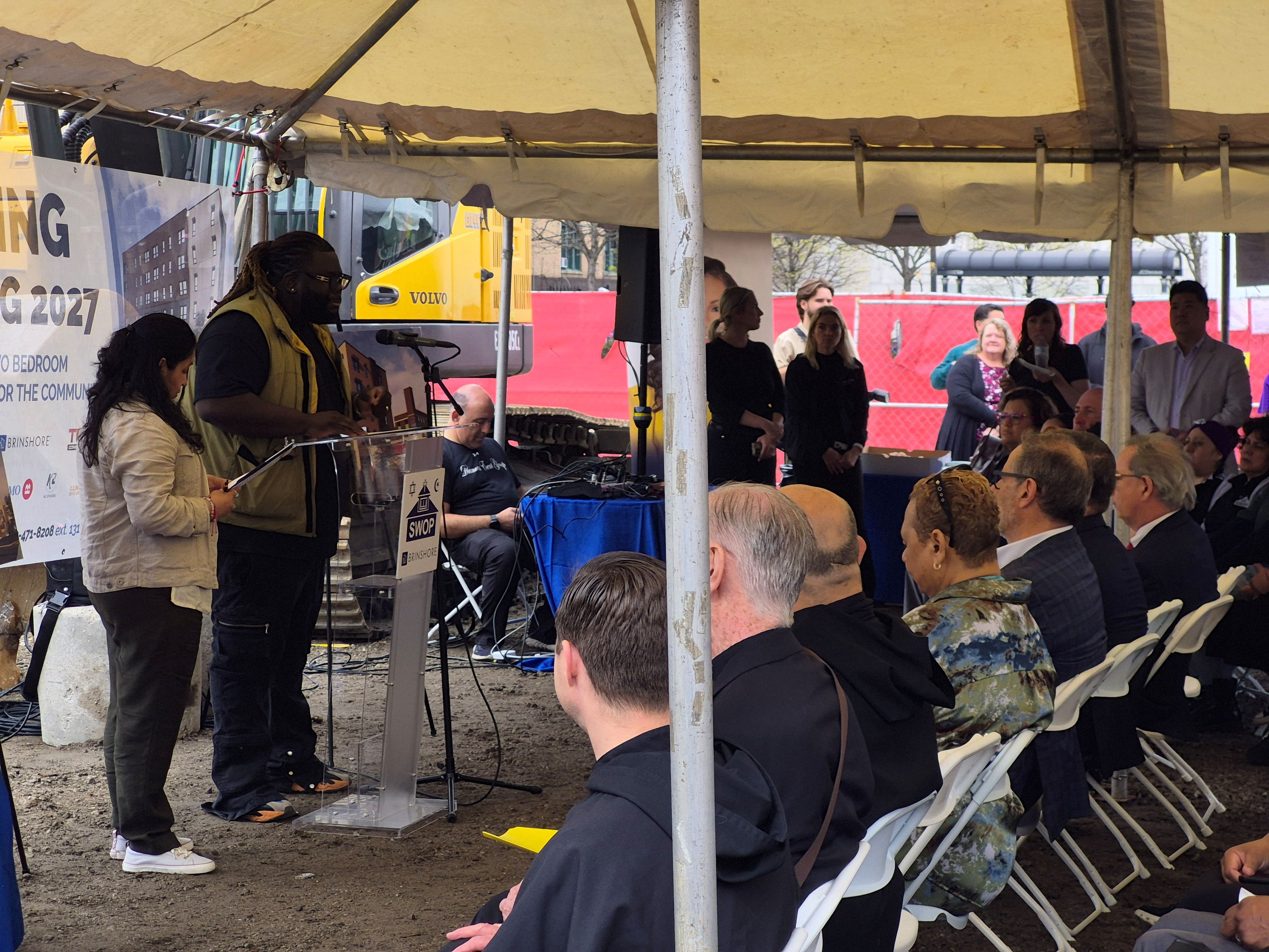 They were joined by a strong coalition of partners who helped bring the project to life, including representatives from Brinshore Development, Toro Construction, the Local Initiatives Support Corporation (LISC), BMO, and 16th Ward Alderwoman Stephanie Coleman. Each speaker reflected on the significance of the moment—not just as a construction milestone, but as a testament to what is possible when organizations and residents work together with intention. This development represents the first major investment of new housing construction in over 20 years, a meaningful step toward reversing a long history of neglect.