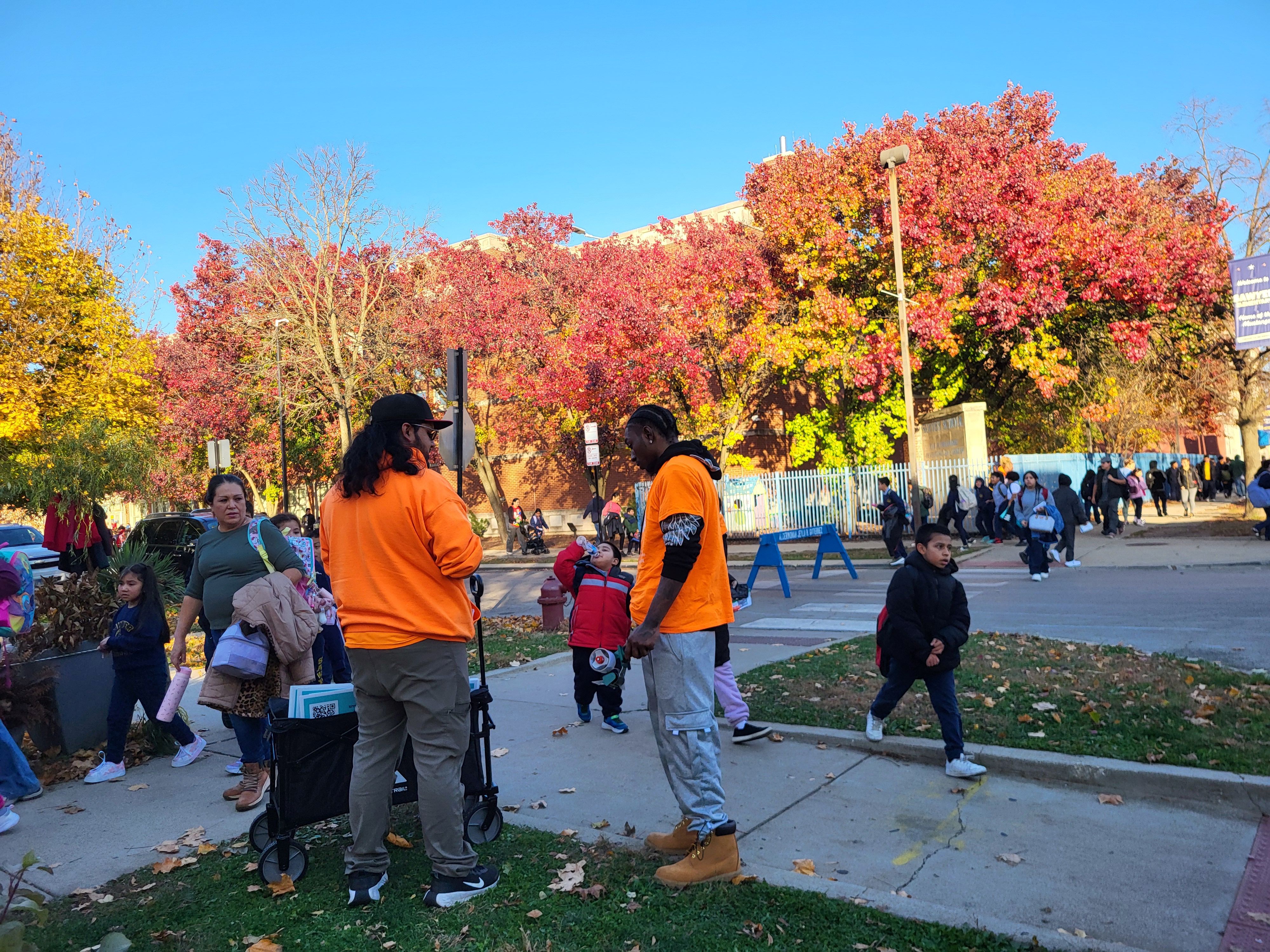 The event brought out organizers, outreach workers, and volunteers who split into teams to cover multiple blocks, schools, and high-traffic areas across Gage Park. Their goal was to make sure community members knew their rights, understood what to do if confronted by ICE, and had access to resources that could keep their families protected. Teams shared “Know Your Rights” information, posted supportive yard signs for residents and businesses, and assisted families during school dismissal times, providing both reassurance and visibility.